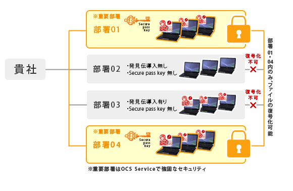 OCS Serviceを導入し、Secure pass key を設定した限定された部署内でのデータの受け渡しが可能。