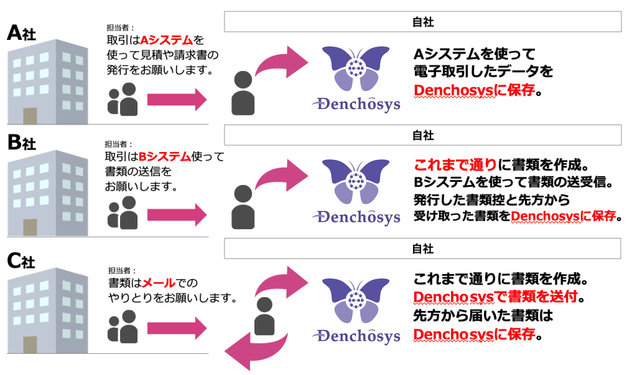 | ③電子取引 | 他社より電子的に授受した取引情報をデータで保存 |