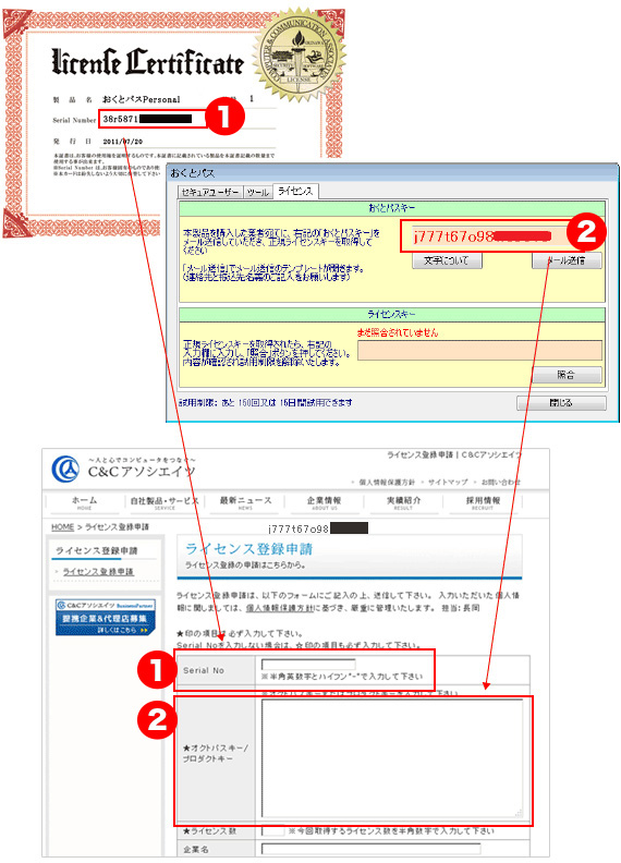 | ① シリアルナンバー | ライセンス証書に記載された「Serial Number」 |